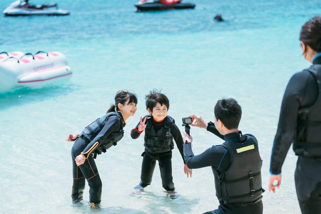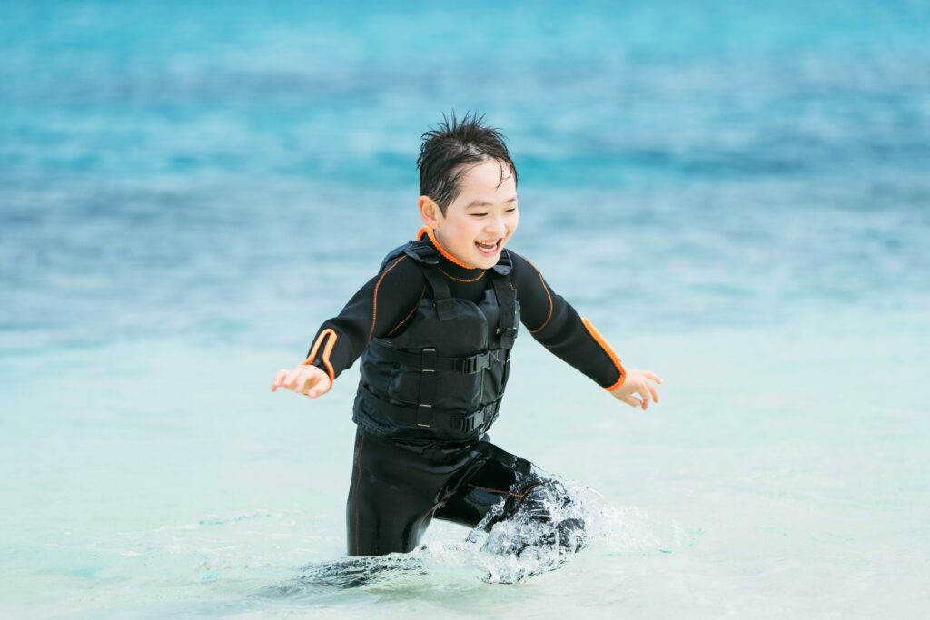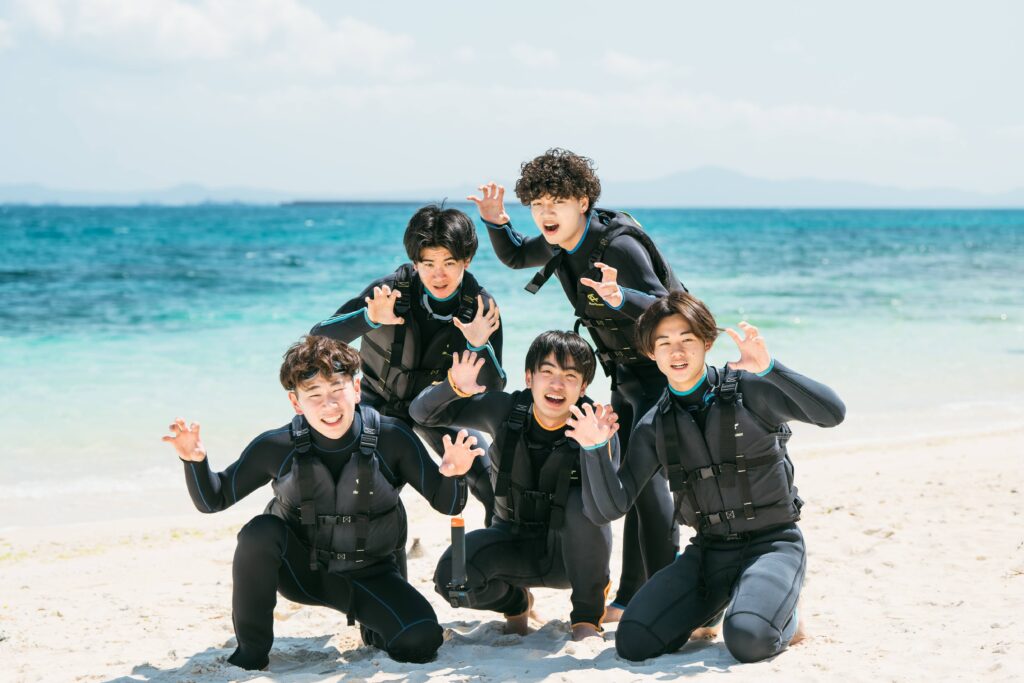 沖縄の海では、ウエットスーツを着用すれば冬でも寒さを気にせずに楽しめちゃいます♪