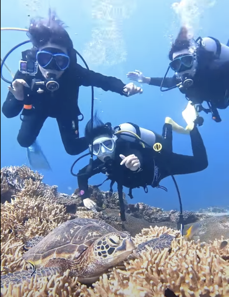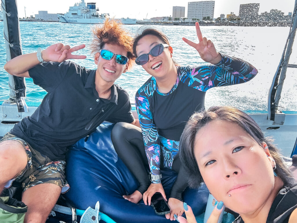 石垣の海でダイビングできる実感が湧いてきて3人ともワクワク🥳✨