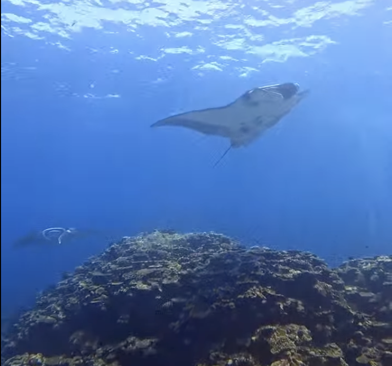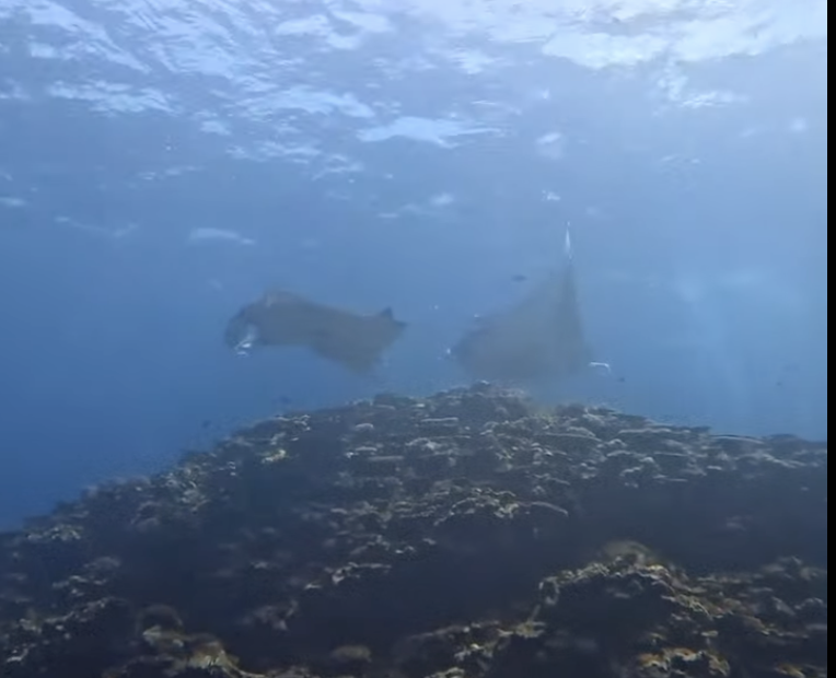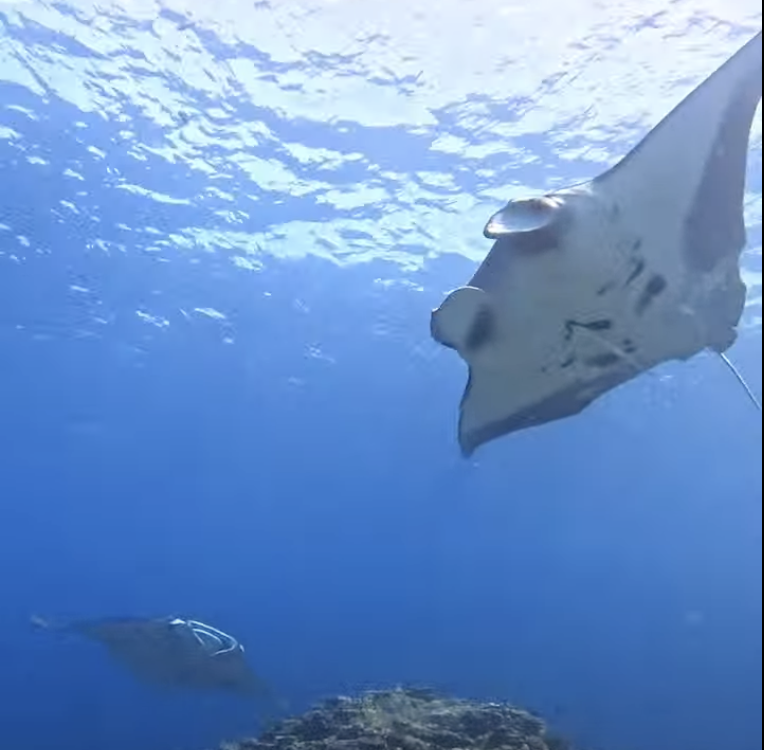 自分達も見失わない様に必死に泳いで着いて行って、岩に捕まって息を整えていると目の前にマンタが二枚🥹✨